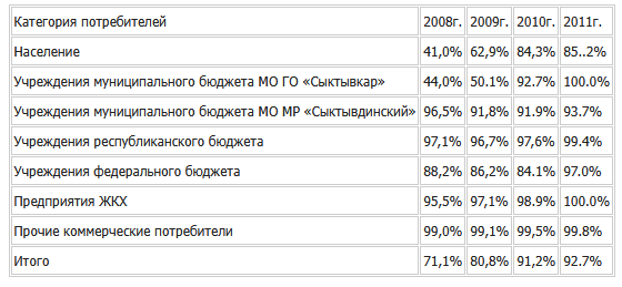 По бюджетным учреждениям всех уровней – на 12,5 % и 9,7 % соответственно (уменьшение объемов, как по населению, так и бюджетных организаций, обусловлено реализацией Федерального закона № 261 “Об энергосбережении и повышении энергетической эффективности и о внесении изменений в отдельные законодательные акты Российской Федерации”).