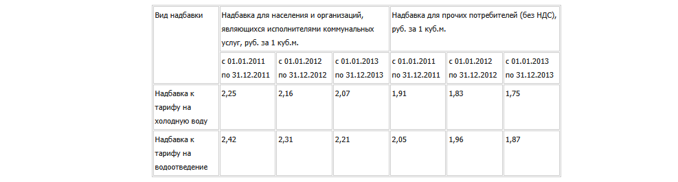 МУП «Сыктывкарский Водоканал» сообщает о внесении изменений в решение Совета муниципального образования городского округа «Сыктывкар» от 16.11.2010 №35/11-605 "Об установлении надбавок к тарифам на холодную воду и водоотведение для потребителей МУП «Сыктывкарский Водоканал»", в котором изменено изложение приложения на следующую редакцию: